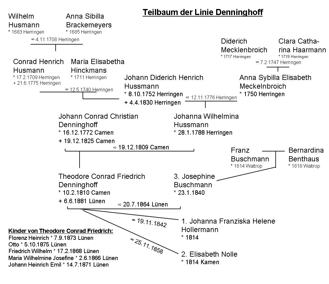 Denninghoff, geb. 16.12.1772 in Camen, der der Bruder von Gottfried Johann Henrich Christopher war, geb. 23.12.1774 (unsere Linie).